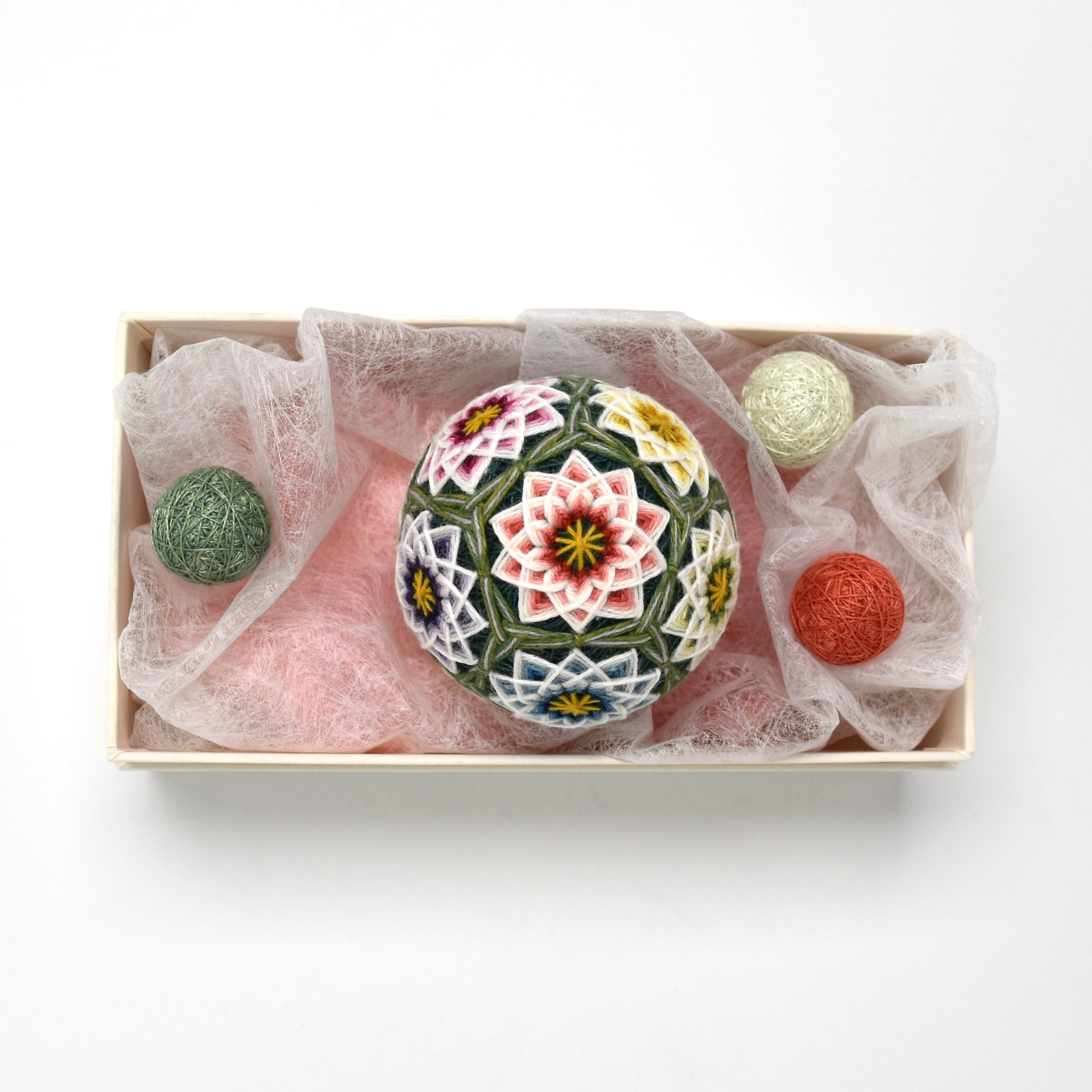 小さい手まり:直径約1.5~1.9cm(作品によって大きさは多少異なります)
