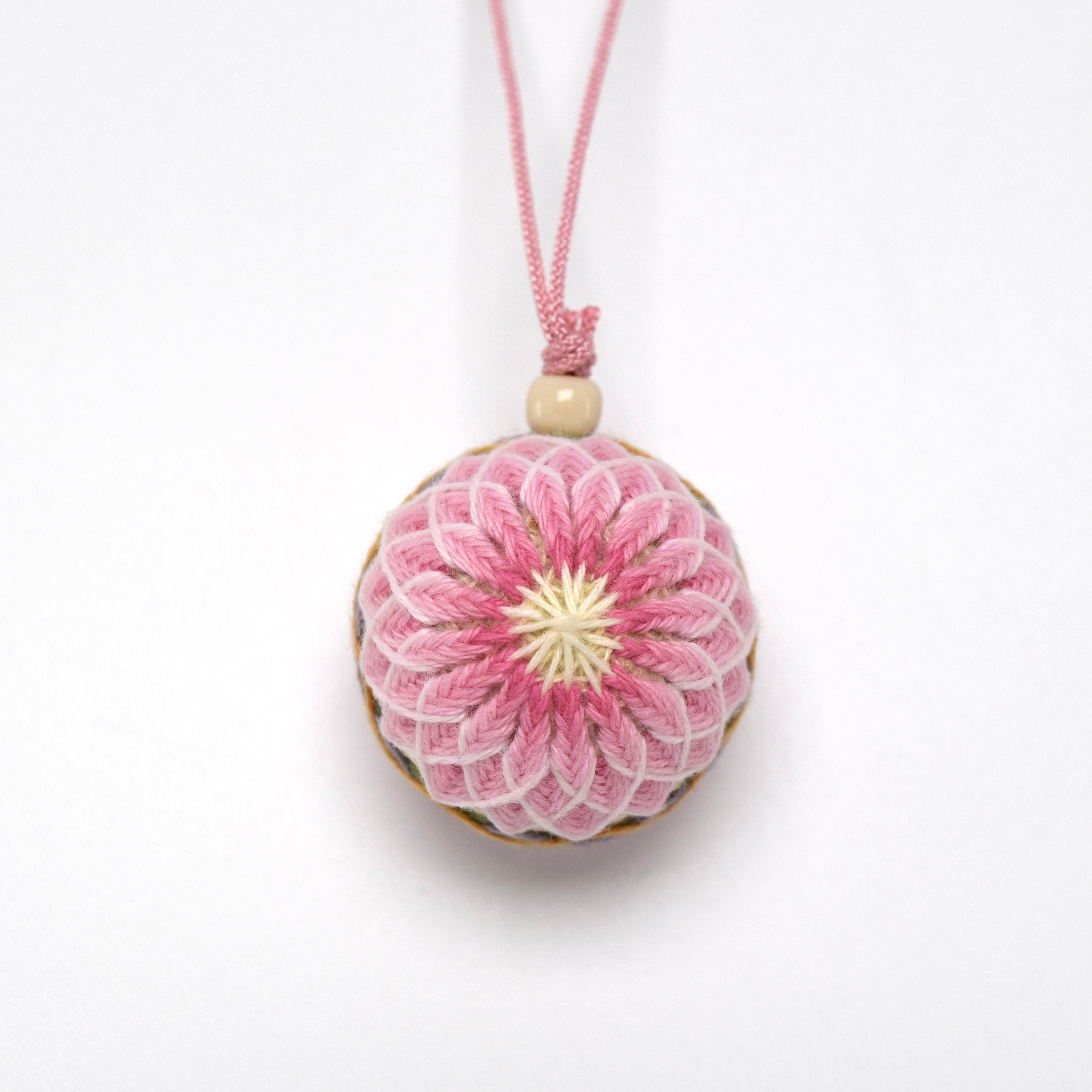 白檀・丁字・龍脳などの天然香原料のチップを手まりの芯に入れストラップに仕立てました。