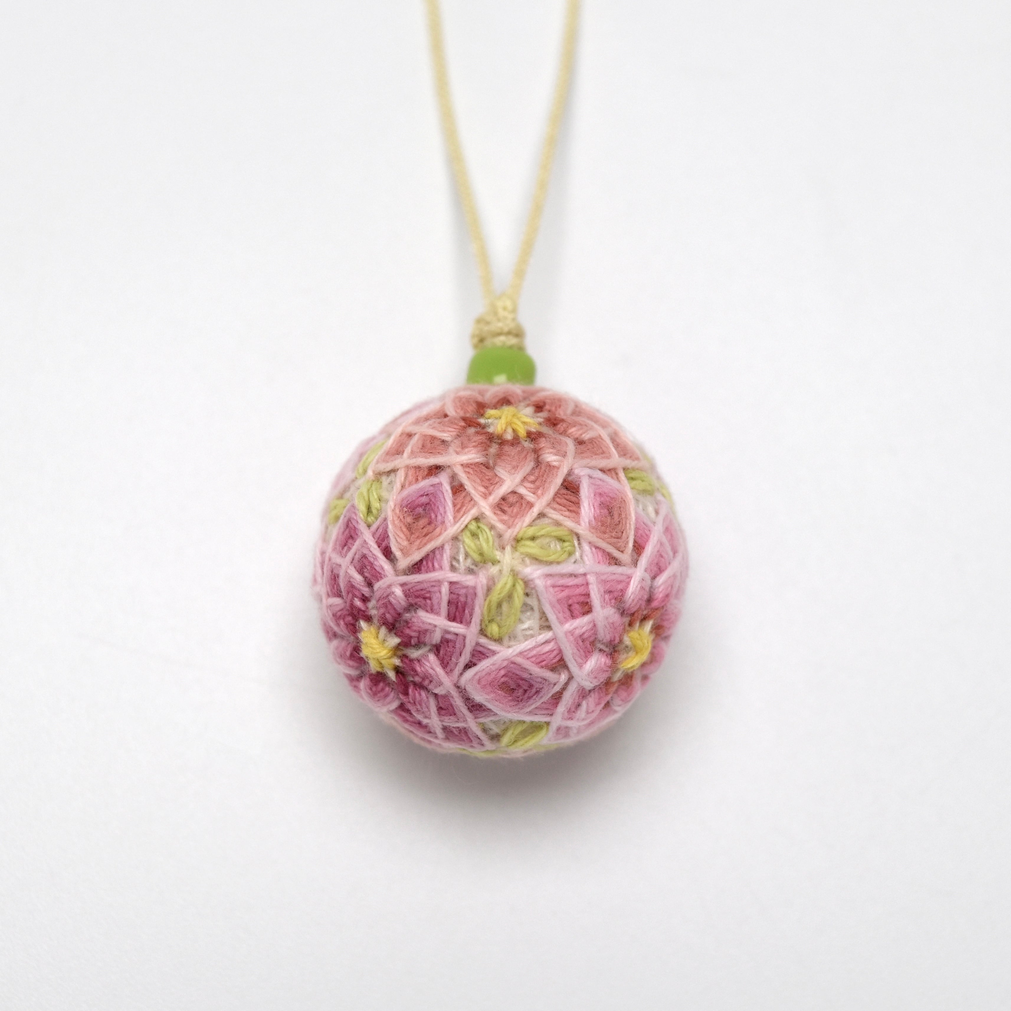 白檀・丁字・龍脳などの天然香原料のチップを手まりの芯に入れストラップに仕立てました。